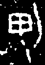 这个字是“男”。(左为拓片,中为摹写,右为图示)。左为“田”,右为“力”。“力”表示的是一种古代农具“耒”的形状。在田里劳动是古代男子的主要职责,因此,用“男”来表示男人。今本《说文》:“男,丈夫也,从田力,言丈夫致力于田也”。最初,“男”的写法为左田右力,后来演变为上田下力。