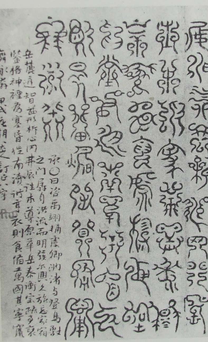 岣嵝碑,亦称禹王碑、大禹功德碑。相传此碑原刻于湖南省境内南岳衡山岣嵝峰,故称“岣嵝碑”,原迹已无存。碑文共77字,字形如蝌蚪,既不同于甲骨和钟鼎文,也不同于籀文蝌蚪。有人猜测可能是道家的一种符录,也有说是道士伪造。