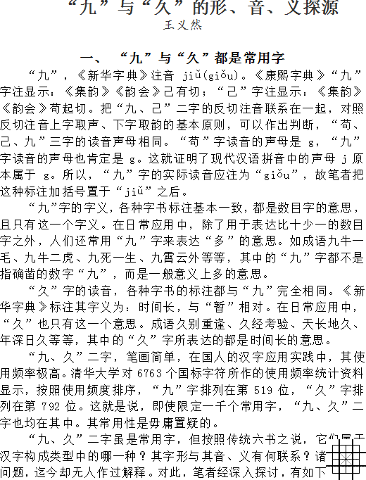 “九”与“久”的形、音、义探源