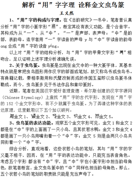 解析“用”字字理 诠释金文虫鸟篆
