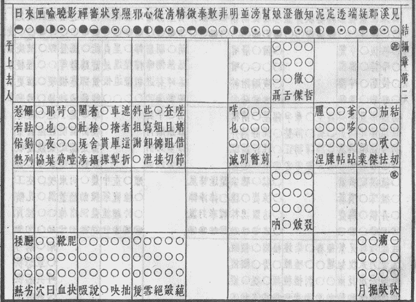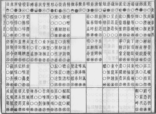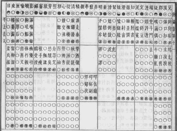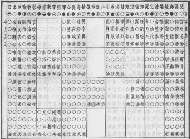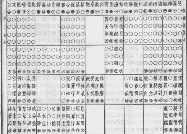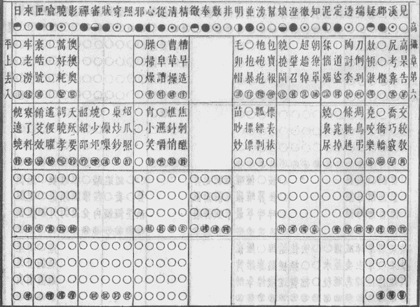 这里之所以要推介该摄章,是因为其韵图齐齿呼二等韵位所收纳的字平、上、去三声调相对较为齐全,且这些字是证明现行字典一些注音失当问题的有力证据。
