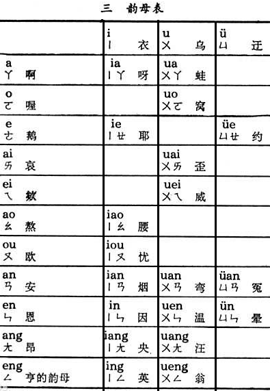 现代汉语拼音方案韵母表