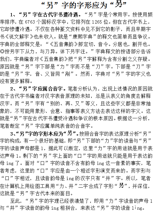 “另”字的字形应为“”