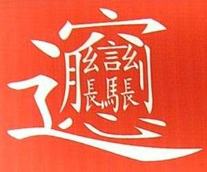 在汉字编码者看来,这不过是三块长方形构成的汉字,其中只有一块心字,能认出。近看,前二块是由 日糸幺糸干 构成,以及 月长马长戈 构成。一个造字游戏而已。   (林家毅 ,2008-05-09 )