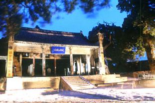 仓颉庙及仓颉墓之古碑与古柏,亦极富盛名。原有碑石十八通,多为各式纪念碑。最著者为东汉延熹五年始镌《仓颉庙碑》,及前秦建元四年(公元368年)所立《广武将军碑》。前者为古隶,结构舒展,线条流畅;后者为今隶,疏朗明快,粗犷飘逸。受到康有为、于右任等极高评价,被誉为“绝品”。两碑现迁置西安碑林。树木品种原本众多,松柏蓊郁,均甚壮观。尤以48株千年古柏组成之古柏群,堪与曲阜孔庙、桥山黄帝陵之古柏群鼎足而三。最巨者当为仓颉手植柏,高17米,树围7.25米,根围9.3米,足可与黄帝陵轩辕手植柏媲美。树裂如劈,枝指似戟,岁月沧桑,文明历程,尽在其中。 |