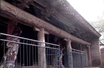 今仓颉庙北屏黄龙山,南临洛河水,兀然高耸,颇具气象。庙始建年代无考,推测不晚于西汉,东 汉延熹五年(公元162年)已具规模。宋、元以降,均曾进行维修。现存建筑占地十七亩,以明、清风格为主。主体建筑依中轴线由南向北排开,分别为照壁、山门、前殿、报厅、献殿、寝殿。两侧又有东西戏楼及钟鼓楼、东西配殿及廊房等。布局对称,错落有致。殿宇皆系明、清乃至民国时期重修。寝殿前搭牵三间单面廊房,明三暗五,立柱内倾,呈元代建筑风格。殿前大檩长16米、径56厘米,粗细相同,据云为蒿木,为世所罕见。戏楼殿厅间有彩绘壁画,据风格推测,当绘于明末清初。